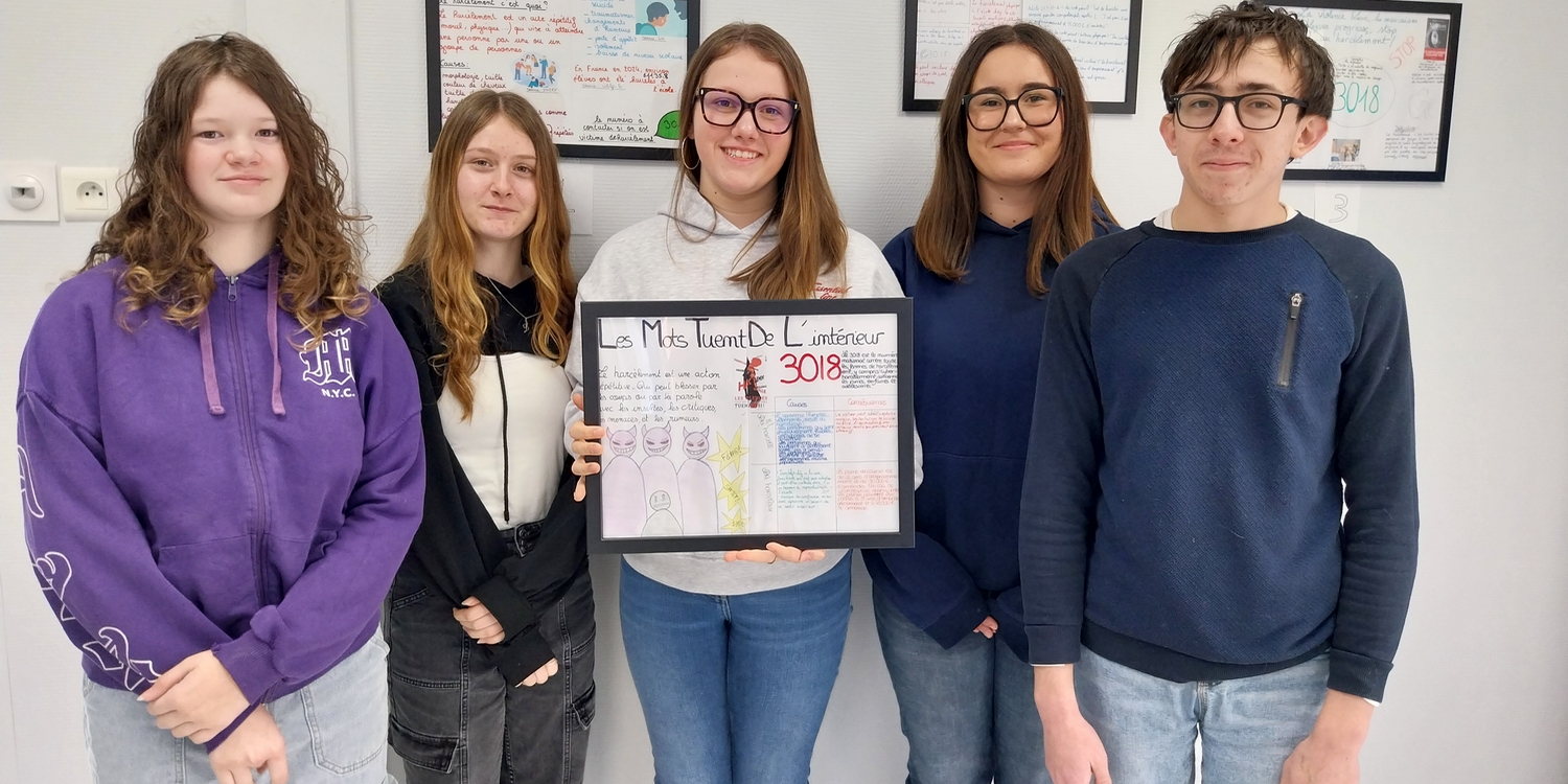 Les élèves et les adultes du collège ont voté massivement et l’équipe gagnante est celle qui a intitulé son affiche « Les mots tuent de l’intérieur ».