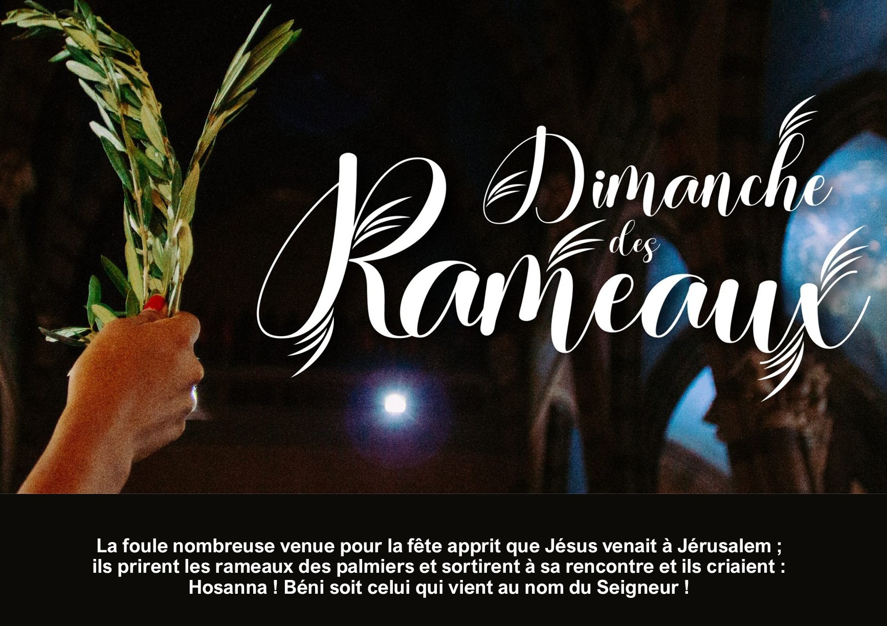 Le dimanche des Rameaux commémore l’entrée de Jésus à Jérusalem, accueilli par la foule agitant des rameaux de palmiers. C’est un rappel pour les chrétiens d’accueillir Jésus dans leur cœur et d’être prêts à le suivre .
