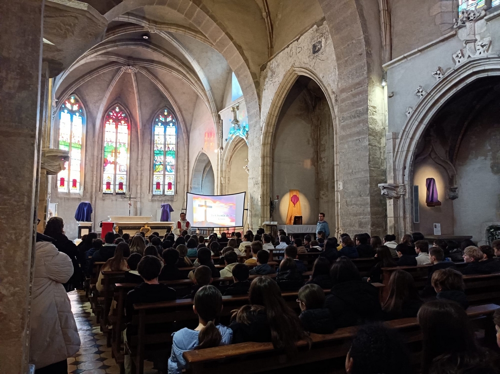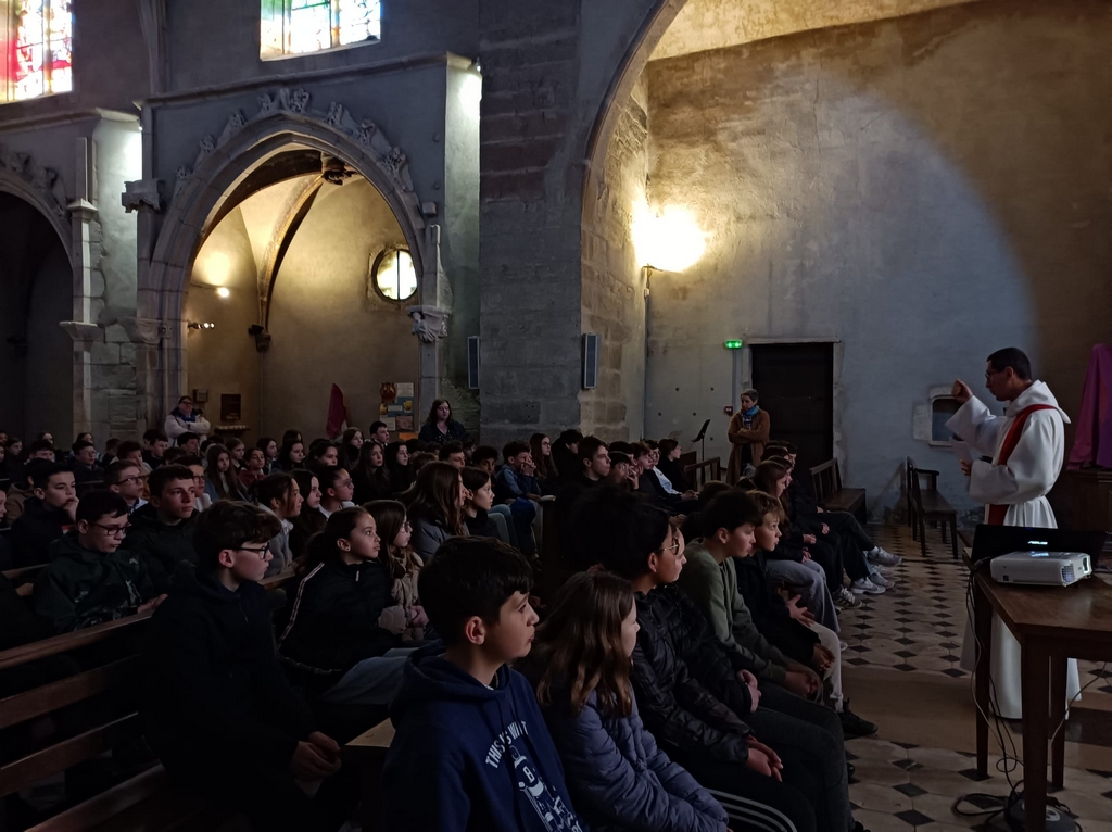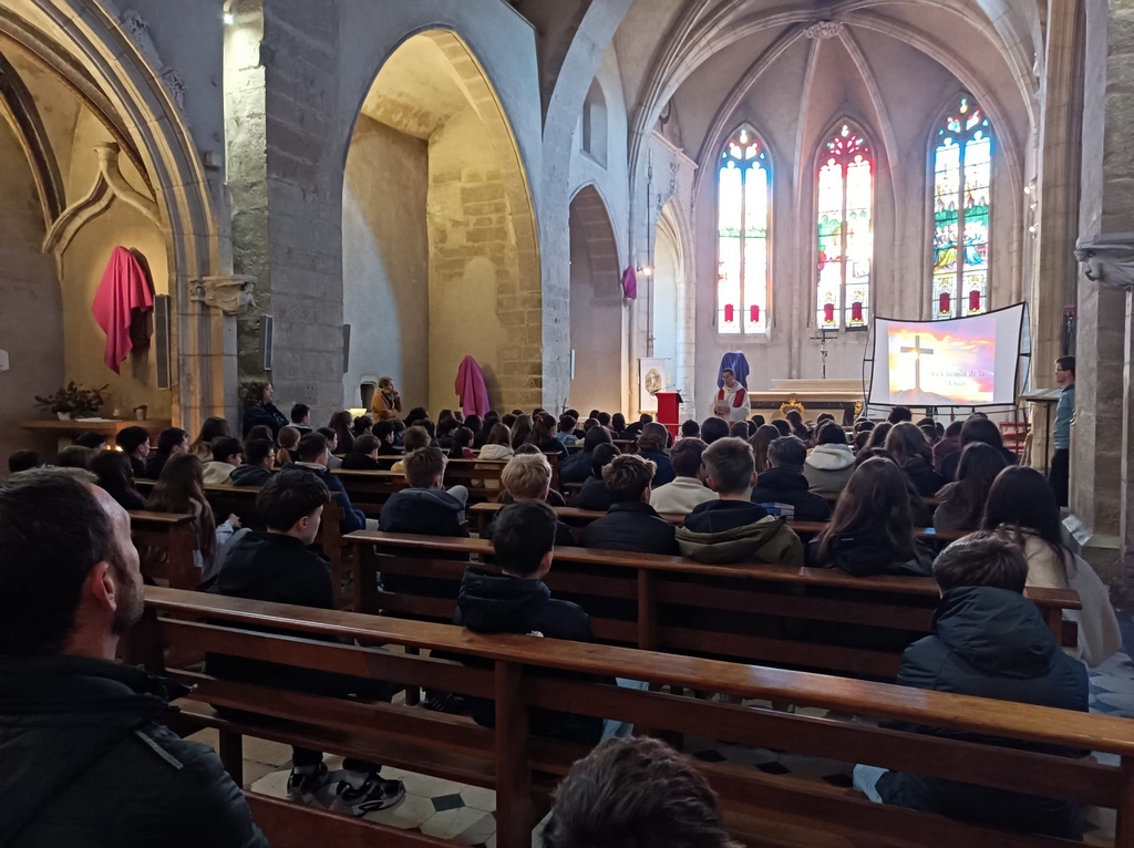 La matinée, primaires et collégiens se sont rendus à l’église pour célébrer Pâques. Une cérémonie animée par le prêtre Michaël Gaborieau, au cours de laquelle ce dernier a exposé le Chemin de Croix de Jésus.