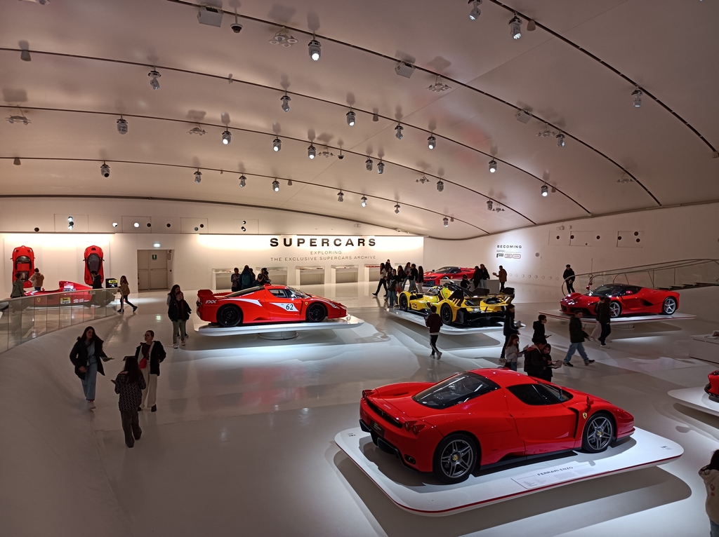 Après une longue journée de route, une première étape dans la région de Parme a permis à chacun de reprendre des forces autour… d’un premier plat de pâtes, naturellement ! Ce moment convivial a marqué le véritable début de l’immersion italienne. Le lendemain matin, une surprise attendait les voyageurs : la visite du Musée Ferrari à Modène. Devant les voitures mythiques de la célèbre marque au cheval cabré, les regards se sont illuminés. Qu’on soit passionné d’automobile ou simple curieux, il est difficile de ne pas se laisser séduire par la beauté des carrosseries, l’élégance des lignes et la mise en scène spectaculaire de ces véhicules de légende.