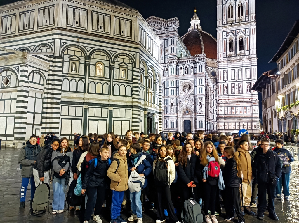 La dernière étape du voyage a mené les élèves à Florence, joyau de la Renaissance. La silhouette majestueuse du Duomo, les façades de marbre polychrome, les marchés animés, les palais élégants et l’incontournable Ponte Vecchio composent un décor unique. Il y a tant à admirer dans cette ville que, comme l’écrivait Stendhal, le visiteur peut être saisi d’une véritable « fièvre ». Après une journée riche en découvertes, rien de tel qu’une bonne pizza partagée pour se remettre de cette intense journée avant de regagner les autocars pour le retour.